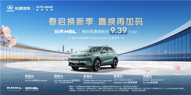 春分将至,万物复苏。对于许多家庭而言,一辆能承载全家出行需求、让旅途更舒适的SUV,正是开启春日旅程的“最佳搭档”。近日,哈弗H6L限时购车政策再加码:3月13日至3月31日,限时优惠换新价低至9.39万元起(已包含现金礼14000元及置换礼10000元)。当诚意十足的购车政策…
